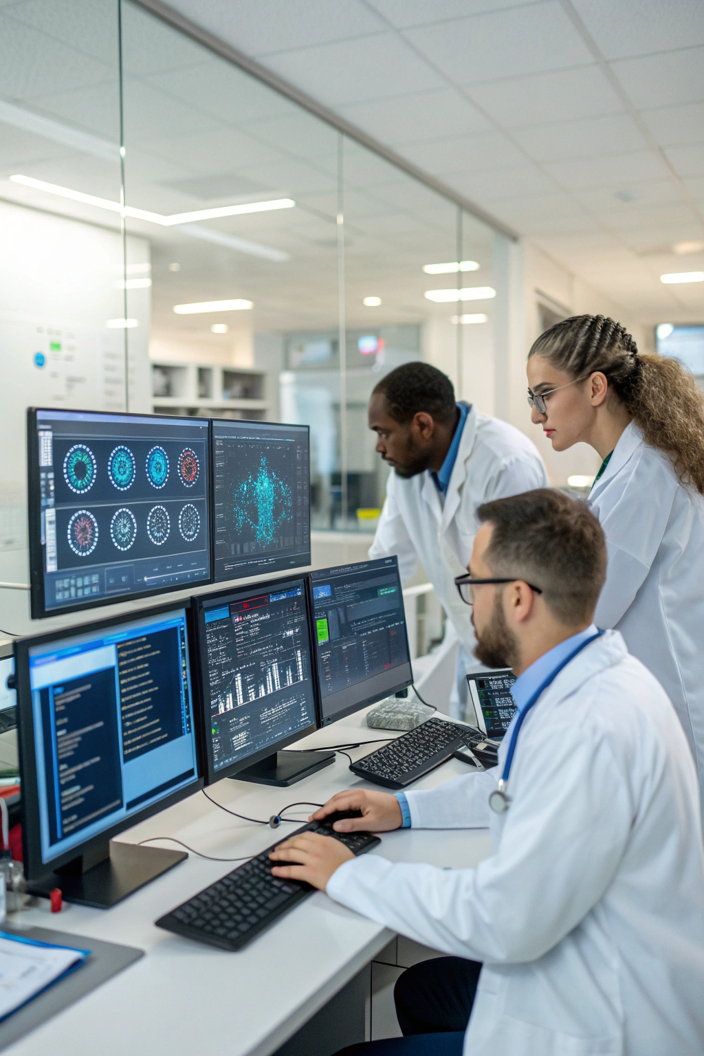 Cette efficacité est rendue possible par l'accumulation massive de données de santé (dossiers médicaux électroniques, imagerie, données de capteurs portables). Leur traitement par des algorithmes d'apprentissage profond (comme les réseaux neuronaux convolutifs pour l'imagerie ou les réseaux de neurones récurrents pour les séries temporelles génomiques) permet de déceler des corrélations complexes et des schémas invisibles à l'œil humain.